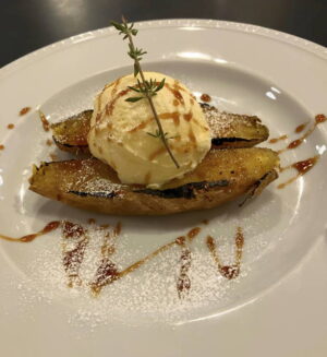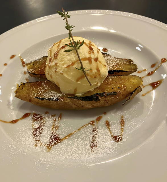 今回の訪問で選んだメニューは、土岐綾乃の焼き芋ブリュレ黒蜜ソース添え。