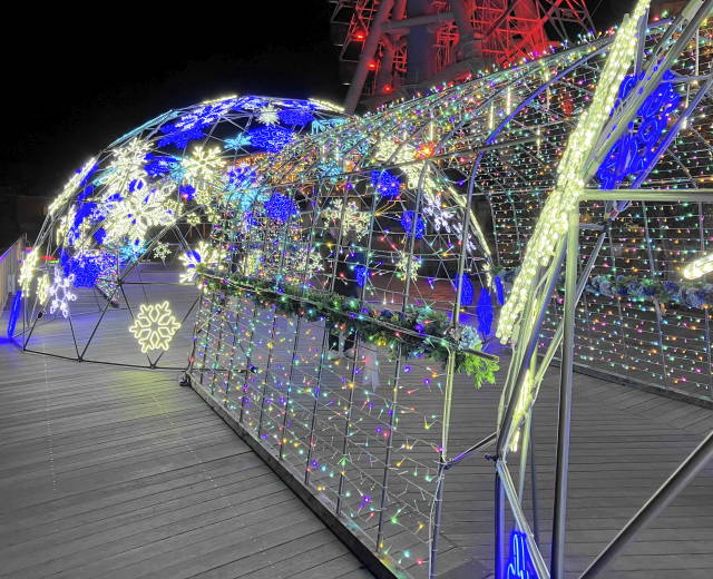 ゆるキャン△カフェで心温まる料理を楽しんだ後に、きらめくイルミネーションを眺める時間は格別。