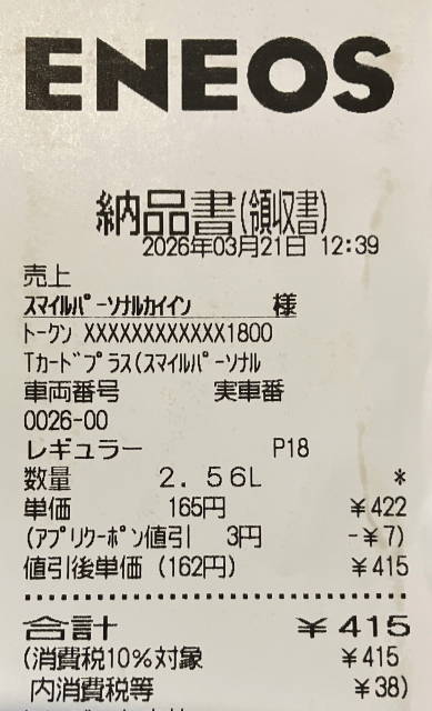 給油量は 2.56L、合計 415円。